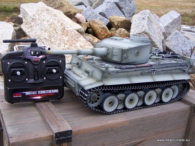 RC model tanku Tiger (raná výrobní verze) v kovové PROFI EDICIRYCHLÁ NAVIGACEPopis modelu:Věrná kopie elitního německého tanku Tiger ve své rané výrobní verzi z 2. světové války. Ovládání tanku je nově na moderní evropské frekvenci 2.4 GHz a umožňuje jízdu několika modelů u sebe. To přímo svádí k velkým tankovým bitvám mezi modely. Destrukci vašich cílů zajistí Airsoft bojový systém (dosah 25 metrů) zabudovaný na otočné věži (320°), ovladatelný sklon kanonu zaručuje při střelbě maximální přesnost. Tank dokáže simulovat sílu zpětného rázu střelby (automaticky cukne po výstřelu) a skutečný zákluz hlavně.. Vysokokapacitní 2000 mAh Ni-Mh baterie zajištuje plynulý provoz tanku se všemi jeho funkcemi až na 30 minut. ![]() Parametry: